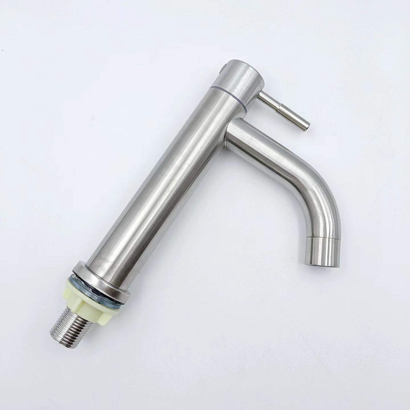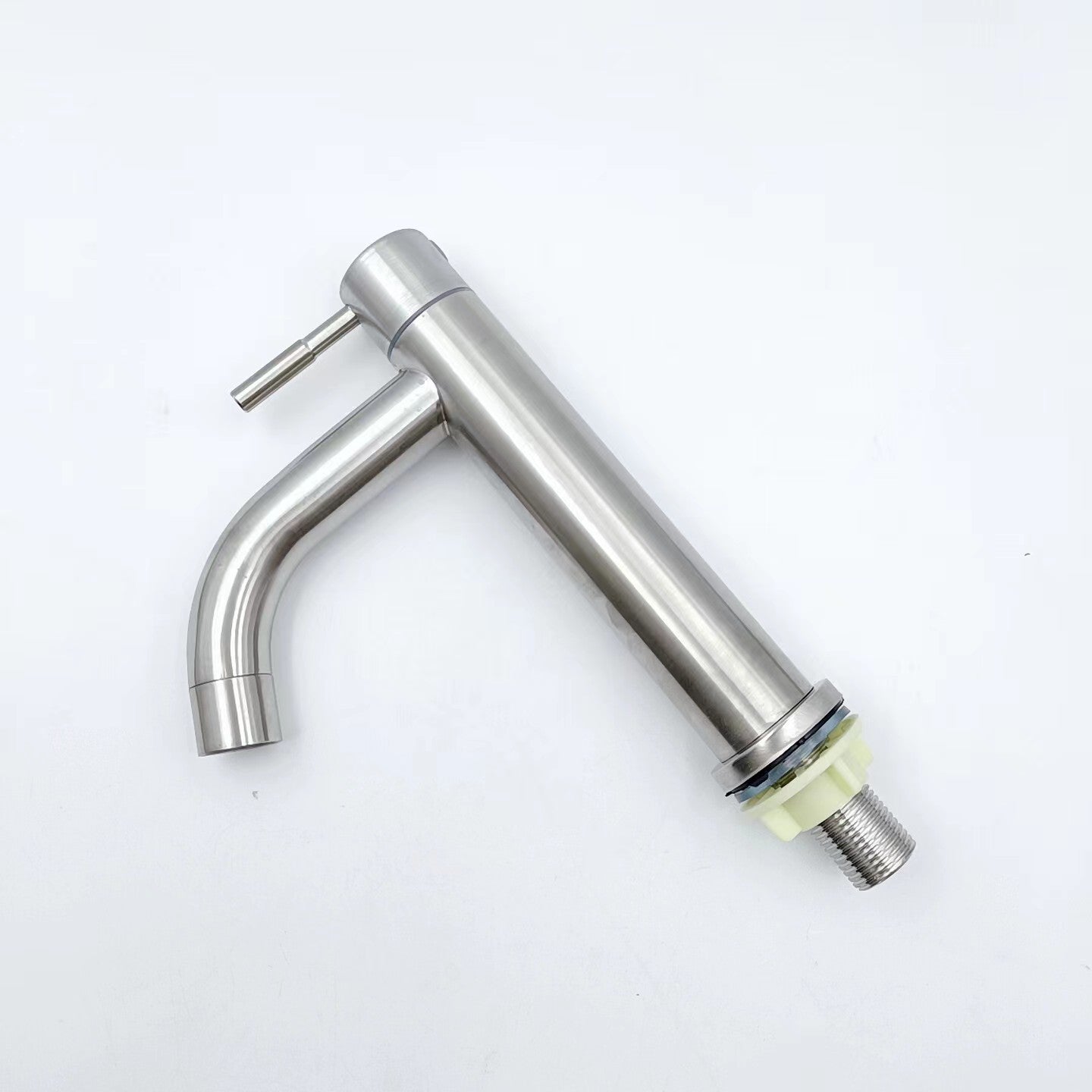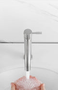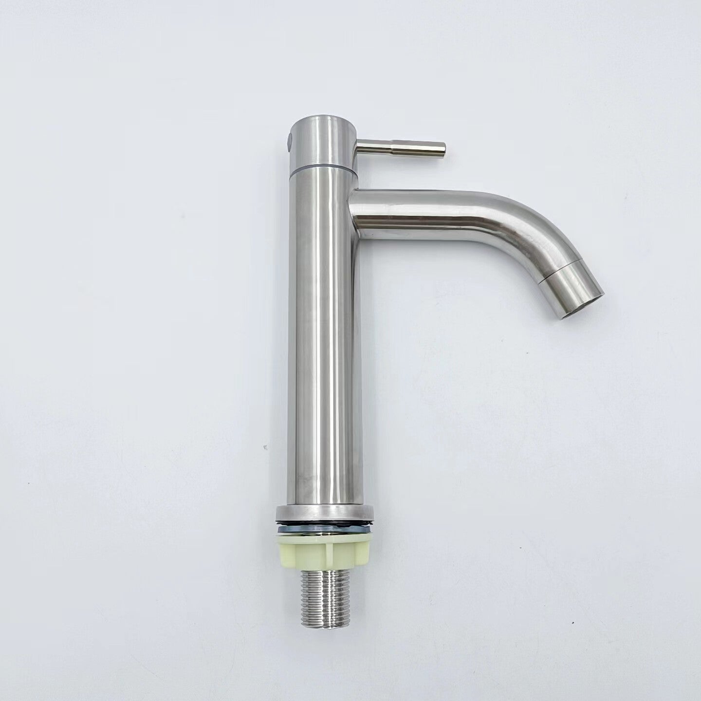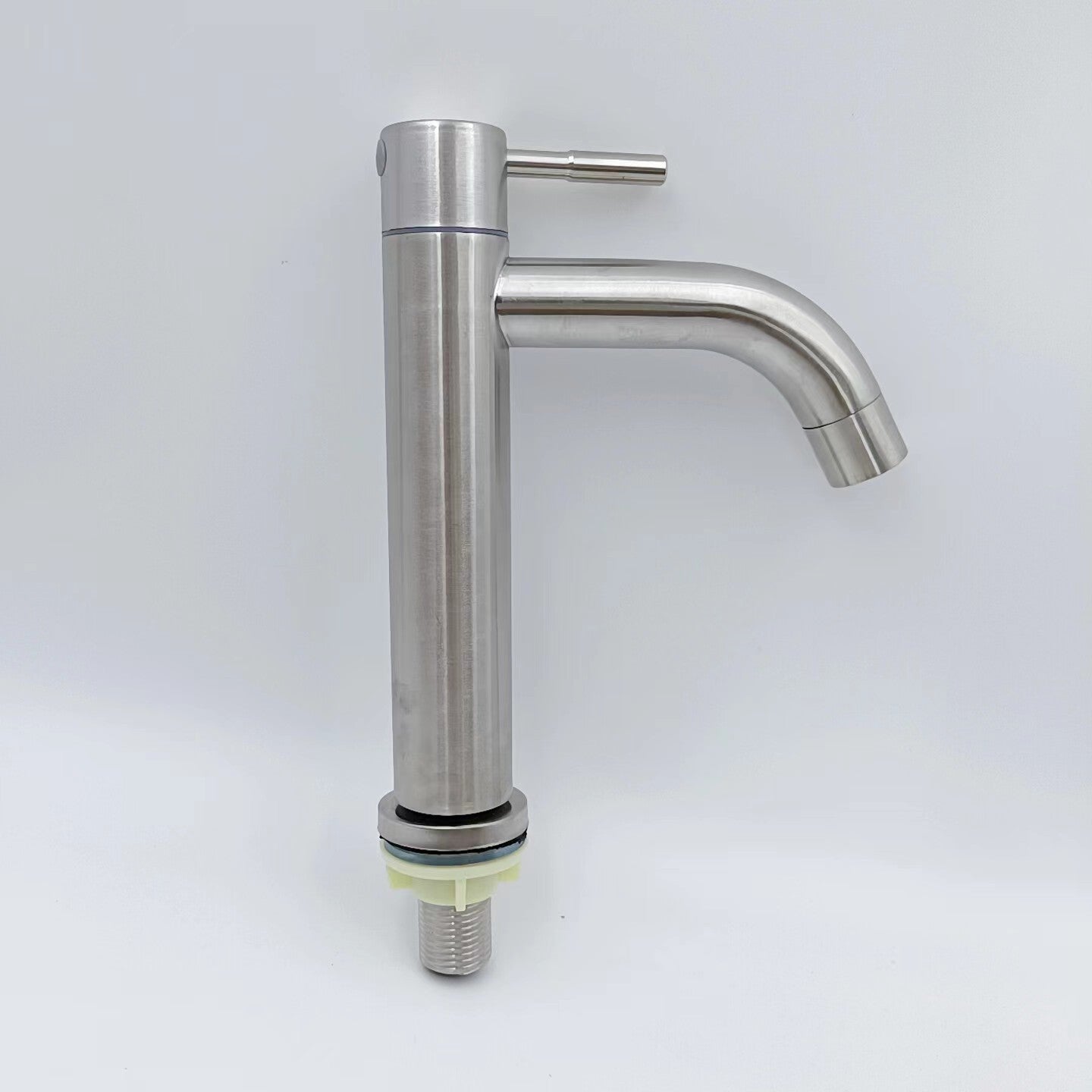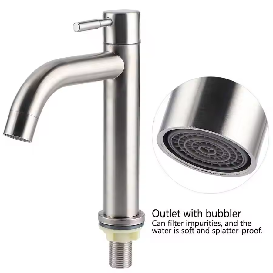 This stainless steel basin faucet is designed for high basins in your bathroom, offering a sleek and modern silver finish.